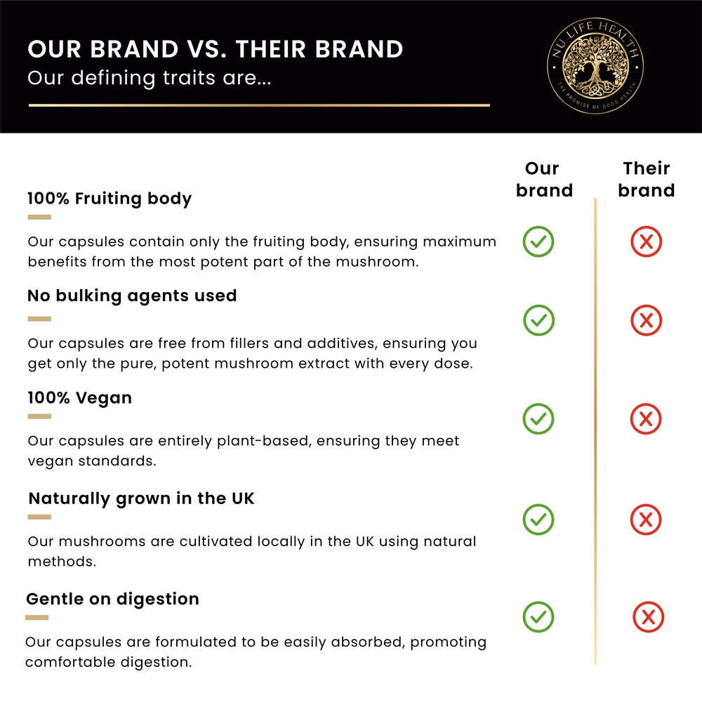 Are you ready to tap into the power of nature for your health? You've come to the right place! At Nu Life Health, our premium mushroom capsules are created in the UK using only the finest fruiting bodies. Our vegan, non-GMO, and Soil Association certified organic supplements are packed with active compounds like antioxidants and beta-glucans to support your health and vitality.